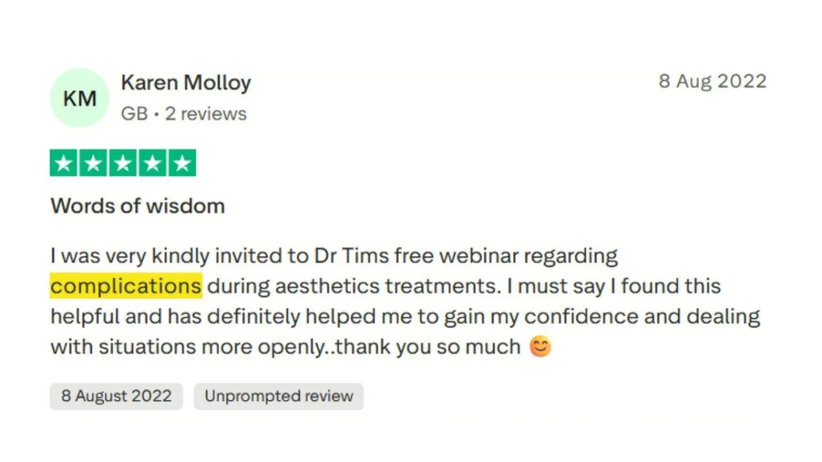 Everyone who attends the webinar LIVE receives my "Dermal Filler Complications Essential Guide" Digital PDF to keep on hand in your practice absolutely FREE.